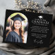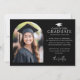 Cartão de lançamento fotográfico com o seu dentro fotográfico, um quadro elegante em forma de arco e um logotipo de boné de formatura com o texto "formando" e a classe do seu ano. Adicione uma mensagem personalizada abaixo.