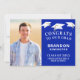 Anuncie a conquista do seu formando com este cartão projetado com uma borda de dedos do boné de formatura e texto em branco contra uma cor de fundo azul de royle editável que você pode mudar para coordenar com a sua foto ou cores escolares. Personalizado com o nome do cheio, fotografia, classe de ano e escola ou universidade. Inclua informações adicionais, como seus planos de formando após segundo grau na parte traseira ou simplesmente exclua o texto de amostra para deixar o vazio traseiro. Você pode ALTERAR A COR clicando na guia PERSONALIZAR MAIS. Entre em contato com o designer por meio do Zazzle Chat ou makeitaboutyoustore@gmail.com se você quiser que este design seja modificado, em outro produto ou quiser coordenar itens.