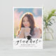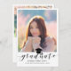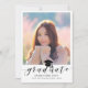 Envie a sua família e amigos um anúncio exclusivo personalizado sobre a graduação de fotos para usá-los. Este modelo moderno apresenta a sua fotografia em branco e abaixo em preto é a palavra "Formando" com o seu nome, escola e ano para personalizar acentuado por um boné de formatura negro. A parte de trás do cartão tem uma foto de segundo com detalhes de graduação dos pais. Desenhada por Susan Coffey.