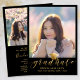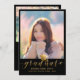 Envie a sua família e amigos um anúncio exclusivo personalizado sobre a graduação de fotos para usá-los. Este modelo moderno apresenta a sua foto em preto e abaixo em um falso roteiro dourado é a palavra "Formando" com seu nome, escola e ano para personalizar acentuado por um boné de formatura negro. A parte de trás do cartão tem uma foto de segundo com detalhes de graduação dos pais. Desenhada por Susan Coffey.