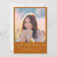 Envie a sua família e amigos um anúncio exclusivo personalizado sobre a graduação de fotos para usá-los. Este modelo moderno apresenta a sua fotografia em laranja e abaixo em um falso roteiro em ouro é a palavra "Formando" com o seu nome, escola e ano para personalizar acentuado por um boné de formatura de ouro. A parte de trás do cartão tem uma foto de segundo com detalhes de graduação dos pais. Desenhada por Susan Coffey.
