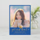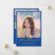 Envie a sua família e amigos um anúncio exclusivo personalizado sobre a graduação de fotos para usá-los. Este modelo moderno apresenta a sua foto enquadrada em azul real e abaixo em um faux gold script é a palavra "Formando" com o seu nome, escola e ano para personalizar acentuado por um boné de formatura de ouro. A parte de trás do cartão tem uma foto de segundo com detalhes de graduação dos pais. Desenhada por Susan Coffey.
