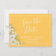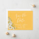 Bonito Guardar o anúncio Data apresenta a cor d'água branco marisca canto sobre fundo amarelo daffodil com blocos de texto personalizáveis brancos em fontes modernas