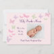 Borboletas que flutuam e uma flatante sombra de rosa cercam sua menina com beijos delicados de borboletas. Todos estarão com cócegas de cor rosa para receber este anúncio de nascimento.