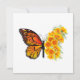 Borboleta de monarca laranja com asa decorada com papoila amarela e vibrante da Califórnia em fundo branco.