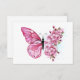 Arranjo de flores de borboleta cor-de-rosa com cereja japonesa cor-de-rosa floresce em fundo branco.