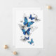 Borboletas azuis voadoras morfo e borboletas brancas em um fundo de abstrato leve. Morpho. Design com borboletas azuis morfo.