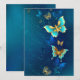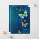 Ouro voador, borboleta de joias em fundo textural azul. Design com borboletas.