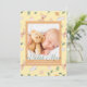 Matizes macios de amarelo, pincel e verde-acinzentado. A design tem borboletas delicadas e flores silvestres. O padrão das borboletas está na frente e no verso do anúncio.