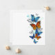 Borboleta azul-clara e voadora morfo e borboleta-monarca laranja num fundo branco. Morpho. Borboleta monarca. Design com borboletas.