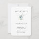 Buquê botânico de inverno com moderna cor d'água, Salve o Cartão de Data. Design de tipografia elegante e simples. Cor de apoio, mostrada em azul empoeirado, pode ser personalizada.