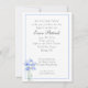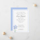 Borda azul macia e flor simples no fundo. Parte de trás azul do cartão.