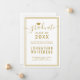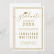 Este simples anúncio branco e dourado apresenta "formando" em uma fonte com letra manuscrita.