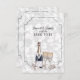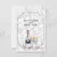 Um convite elegante para o chá Brunch e Bubble para a Noiva ser. Uma garrafa de champanhe e óculos de vinho com fitas, ligeiramente sobre uma falsa estrutura de diamante.