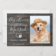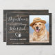 Deixe que o seu Melhor Cachorro anuncie o seu noivado com este moderno e elegante Como 'Cachorro de Honra' eu anuncio 'Meus Humanos Estão se Casando' cartões de anúncio de noivado para cães. Personalize com sua foto favorita e personalize com nomes, data opcional e mensagem de noivado. Este anúncio de noivado canino será um sucesso com sua família e amigos. COPYRIGHT © 2020 Judy Burrows, Black Dog Art - Todos os Direitos Reservados. Cachorro de Honra Anúncio de Noivado de Cão de Estimação com Foto Rústica