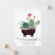 Mande a sua família e amigos este cartão móvel bonito para avisá-los do seu novo endereço. Este design do Sudoeste inspira um pote pintado à mão de suculentos com flor de aquarelas e plantas de cacto em um pote branco com um rosto sobre ele. Acima de uma escrita decorativa a preto, lê-se, "Movimentamos" com o seu nome e endereço para personalizarmos abaixo. A parte traseira do cartão tem uma mensagem e uma assinatura para você personalizar, bem acentuadas por mais suculentos. Projetado apenas para você por Susan Coffey.