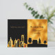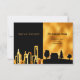 Um cartão de anúncio elegante e minimalista que vai de uma vida urbana a uma vida rural rural. Ouro negro e falso com um horizonte urbano e uma casa no campo. Personalize e adicione seu novo endereço à sua família e amigos.