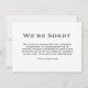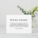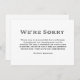 Estes cartões de anúncio simples, mas modernos e elegantes, apresentam a tipografia preta clássica que diz "lamentamos" num fundo branco, para um olhar minimalista que irá coordenar-se com quase qualquer tipo de estilo de evento. Se você precisar cancelar, adiar ou reagendar seu partido ou evento por qualquer motivo, esta é uma maneira simples e na moda para fazer isso.