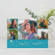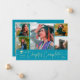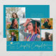 Cartão de foto de anúncio de formatura moderno e simples com 5 fotos na frente e 1 no verso. O texto manuscrito diz "Capítulo Completo". Adicione o nome do formando, informações e mensagem para personalizar este cartão. Cor azul aqua.