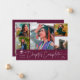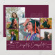 Cartão de foto de anúncio de formatura moderno e simples com 5 fotos na frente e 1 no verso. O texto manuscrito diz "Capítulo Concluído." Adicione o nome do formando, informações e mensagem para personalizar este cartão. Cor cranberry.