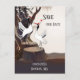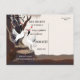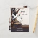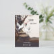 Cartão postal Save the Date com um desenho de grous japoneses na borda de uma floresta. Os grous japoneses são um símbolo de longevidade, felicidade e fidelidade e, portanto, perfeitos para um casamento!