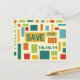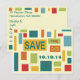 Colorido cartão postal de abstrato da Pop Art para salvar a data por Artinspired. O design moderno apresenta quadrados e retângulos. Este cartão postal de salvar a data funciona bem para casamentos, aniversários, festa surpresa, formatura, festa de 16 anos, bar mitzvah, bat mitzvah, reuniões, arrecadações de fundos e muito mais.