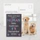 Parabéns! Deixe seu melhor cachorro e seu novo cão guarda anunciar sua gravidez e a notícia de seu novo melhor amigo com esse cartão de anúncio de gravidez de cachorro adorável. "A mãe e o Pai estão a dar-nos um Sobrenome humano... o bebê... o teu mês/data 20xx. Personalize sua mensagem no verso ou exclua para escrever manualmente. Mande para a família e amigos o anúncio mais bonito da gravidez. COPYRIGHT © 2020 Judy Burrows, Black Dog Art - Todos Os Direitos Reservados. Cartão postal de aviso de gravidez de cão
