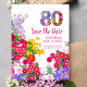 Celebre um marco em plena floração com este vibrante cartão postal de aviso prévio de aniversário de 80 anos, apresentando um “80” cheio de flores coloridas e uma borda de jardim brilhante.