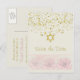 Cartão postal de Bat Mitzvah com efeito dourado de confete, Estrela de Davi e rosas cor-de-rosa para salvar a data