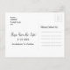 Entre no paraíso com nosso deslumbrante cartão postal 'Salve a data', adornado com elegantes palmeiras balançando ao vento suave do oceano, contra um cenário de praia tropical deslumbrante. Perfeito para um casamento de destino dos sonhos, este cartão postal requintado captura a essência da tranquilidade e do romance, prometendo aos seus convidados uma celebração inesquecível.