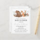 convite de chá de bebê com tema de aquarela da floresta com animais: urso, raposa, cervo, ouriço, cogumelos e folhas da floresta