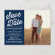 Anúncio de data de salvamento de foto com tipografia retrô em um fundo azul-marinho.