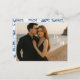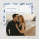 Procurando uma maneira elegante de anunciar o seu casamento? Este cartão-postal personalizável de "salve o dia" permite que você faça o upload da sua foto de noivado favorita, mantendo o design sofisticado e moderno. Com uma disposição de tipos elegante que combina com roupas mais escuras e ambientes de praia, o verso apresenta um padrão azul de chinoiserie atemporal para um acabamento clássico. Perfeito para casamentos na costa, casais modernos ou qualquer pessoa que queira um toque refinado e pessoal.