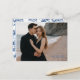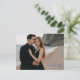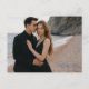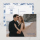 Procurando uma maneira elegante de anunciar o seu casamento? Este cartão-postal personalizável de "guarde a data" permite que você faça o upload da sua foto de noivado favorita, mantendo o design sofisticado e moderno. Com uma disposição de tipos elegante que combina com roupas escuras e ambientes de praia, o verso apresenta um padrão azul atemporal de chinoiserie para um acabamento clássico. Perfeito para casamentos na costa, casais modernos ou qualquer pessoa que queira um toque refinado e pessoal.