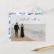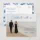Procurando uma maneira elegante de anunciar o seu casamento? Este cartão-postal personalizável de "salve a data" permite que você faça o upload da sua foto de noivado favorita, mantendo o design sofisticado e moderno. Com uma disposição de tipos elegante que combina com roupas mais escuras e ambientes de praia, o verso apresenta um padrão azul atemporal de chinoiserie para um acabamento clássico. Perfeito para casamentos na costa, casais modernos ou qualquer pessoa que queira um toque refinado e pessoal.