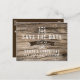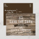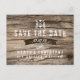 Cartão postal "SALVE A DATA" de madeira rústica e setas.