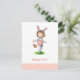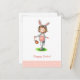 Cartão postal adorável com uma ilustração de uma menina vestida de coelho indo para uma caça ao ovo. A ilustração foi originalmente pintada usando marcadores e lápis. O texto diz "Feliz Páscoa!" mas você pode personalizá-lo com sua própria mensagem. Mais produtos com esta imagem podem ser encontrados na minha loja. Ilustrado e projetado por Patricia Alvarez.