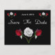 Rosas vermelhas e rosas brancas em fundo preto, cartão postal floral de Save The Date. O texto pode ser customizado para a sua ocasião. Produtos correspondentes disponíveis na minha loja. A rosa vermelha simboliza amor eterno, amor romântico e paixão. A rosa branca simboliza unidade, virtude e pureza de um novo amor, também amor espiritual e lembrança.