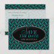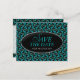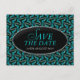Cartões postais de salvar a data para casamento ou noivado com padrão funky azul e preto, simples e elegantes. Cartões de casamento acessíveis sem comprometer o estilo e o design.