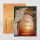 Cartão postal Save the Date com uma passagem que leva a uma luz mágica em uma floresta encantada. O véu de noiva com rosas e a lanterna criam uma atmosfera romântica.