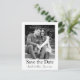 Cartão postal de save the date vintage com foto e texto personalizados.