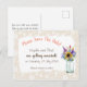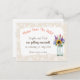 A vivacidade das flores silvestres em uma jarra, contra um fundo de padrão floral de peônias claras, torna este design uma escolha muito popular para um casamento com tema rústico. Os cartões postais são uma maneira fácil e eficaz de informar seus convidados sobre o seu grande dia!