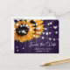 Estes cartões postais rústicos de salvar a data do casamento em madeira, apresentando girassóis em um fundo de madeira de celeiro roxo, são ideais para uma festa de casamento rústica roxa inspirada em girassóis.