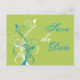 Anúncio Cartão Postal de Salvar a Data Floral Azul Verde B