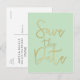 Cartão Postal de SAVE THE DATE em Verde-Menta & Dourado com Fonte Moderna.
