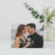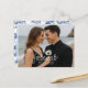 Procurando uma maneira elegante de anunciar o seu casamento? Este cartão-postal personalizável de "guarde a data" permite que você faça o upload da sua foto de noivado favorita, mantendo o design sofisticado e moderno. Com uma tipografia elegante que combina com roupas escuras e cenários de praia, o verso apresenta um padrão azul de chinoiserie atemporal para um acabamento clássico. Perfeito para casamentos na praia, casais modernos ou qualquer pessoa que queira um toque refinado e pessoal.