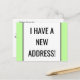 Este design minimalista de cartão postal de mudança de endereço apresenta a mensagem "EU TENHO UM NOVO ENDEREÇO!" na frente, e uma mensagem personalizável no verso. Cartões postais como este podem ser usados para informar amigos e familiares de um novo endereço, um novo número de telefone e outras informações relevantes.