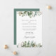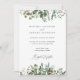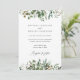 Nosso lindo design botânico de folhagem com aquarela é o pano de fundo para os detalhes do seu casamento neste ótimo cartão de anúncio. Os tons suaves da folhagem de folhas verdes dão um toque clássico atemporal ao design, que seria adequado para um casamento em qualquer estação. Com fonte elegante para seus detalhes.