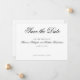 Peça aos seus hóspedes para salvar sua data de casamento com este elegante design preto e branco com tipografia elegante de script. Perfeito para uma gravata negra ou um casamento semissformal. Se precisar de um pedido personalizado, por favor, entre em contato comigo.