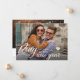 O moderno e elegante cartão de anúncio de Ano Novo, perfeito para anunciar seu noivado de Natal ou data de casamento. Design apresenta o script de tipografia ''ring in the new year'' , fotografia na frente e no verso e desejos do futuro sr. & mrs.
